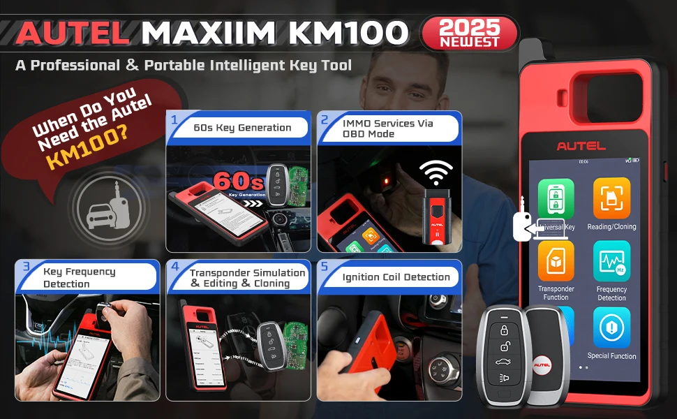 Além de recursos profissionais, como geração de chave universal, aprendizagem completa de chave IMMO, 2025 Autel MaxiIM KM100 KM100X também suporta mais de 10 funções quentes e especiais: