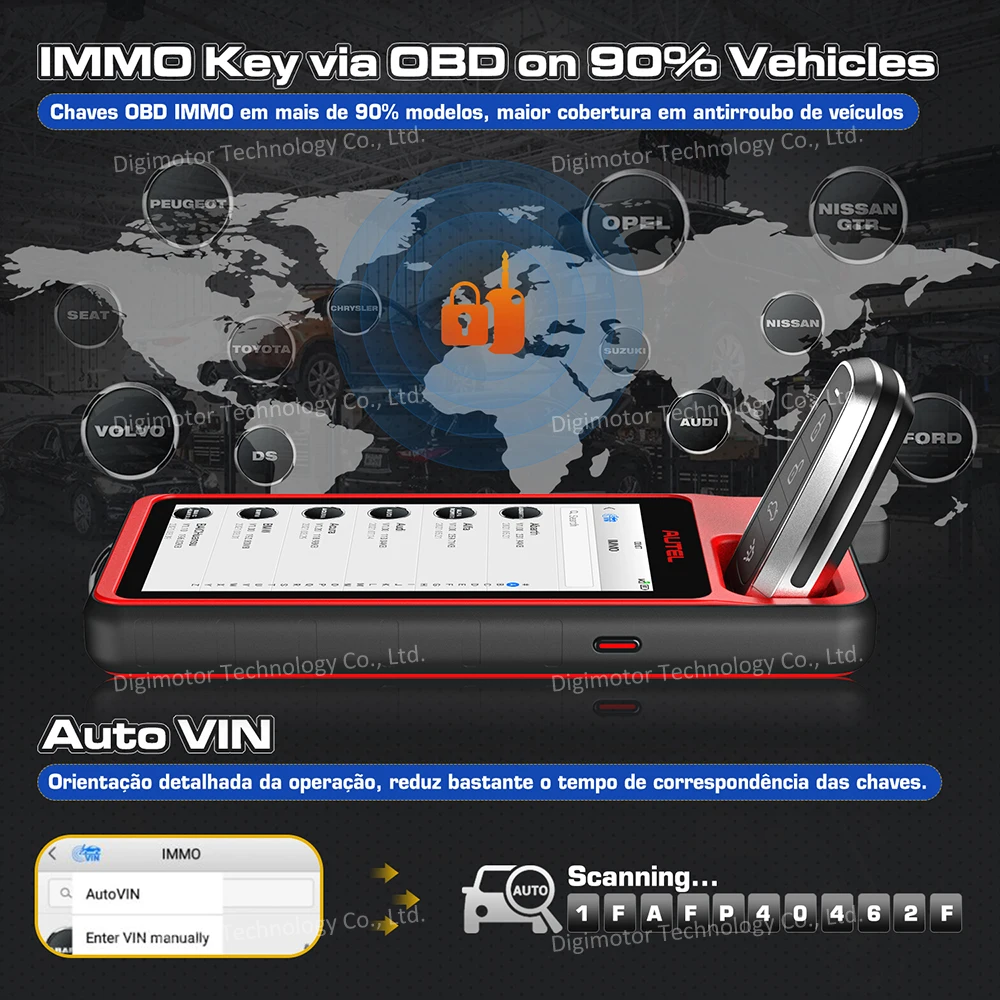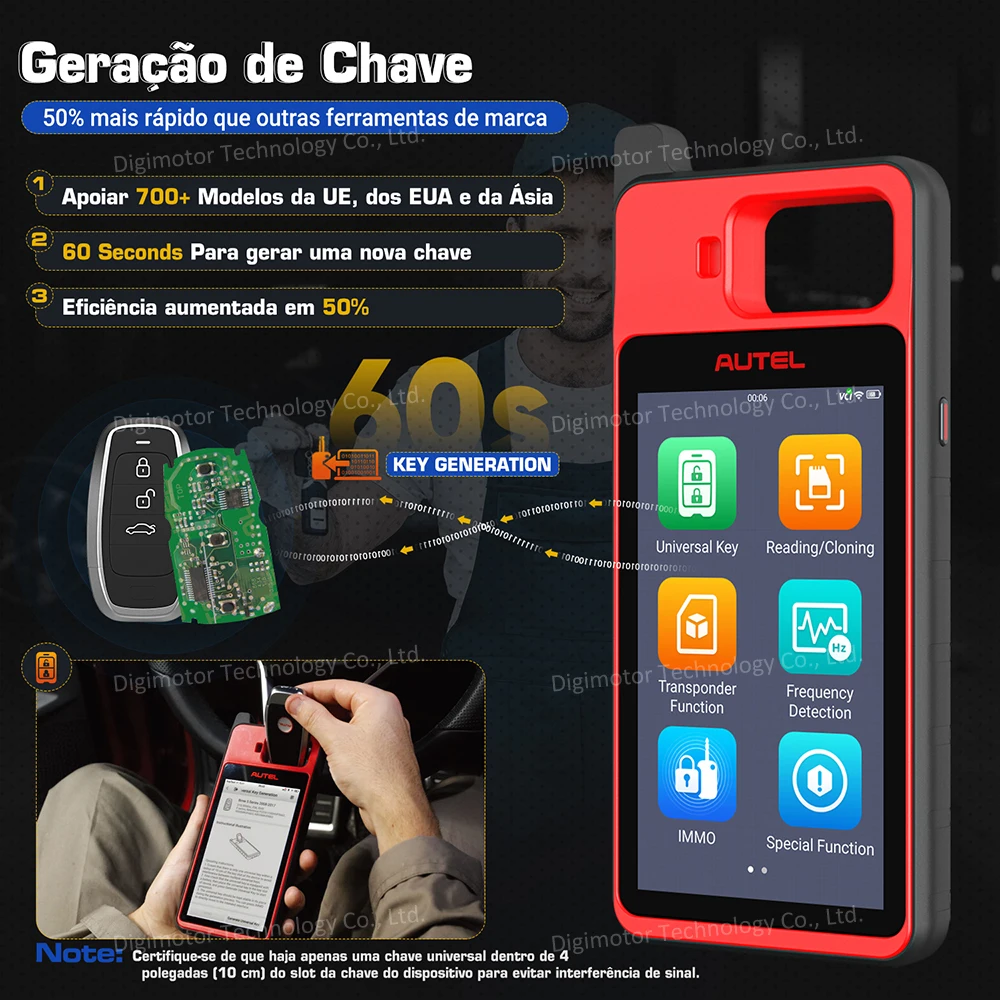 1. Programs Autel's IKEY universal key as smart key replacement for more than 700 vehicles.
